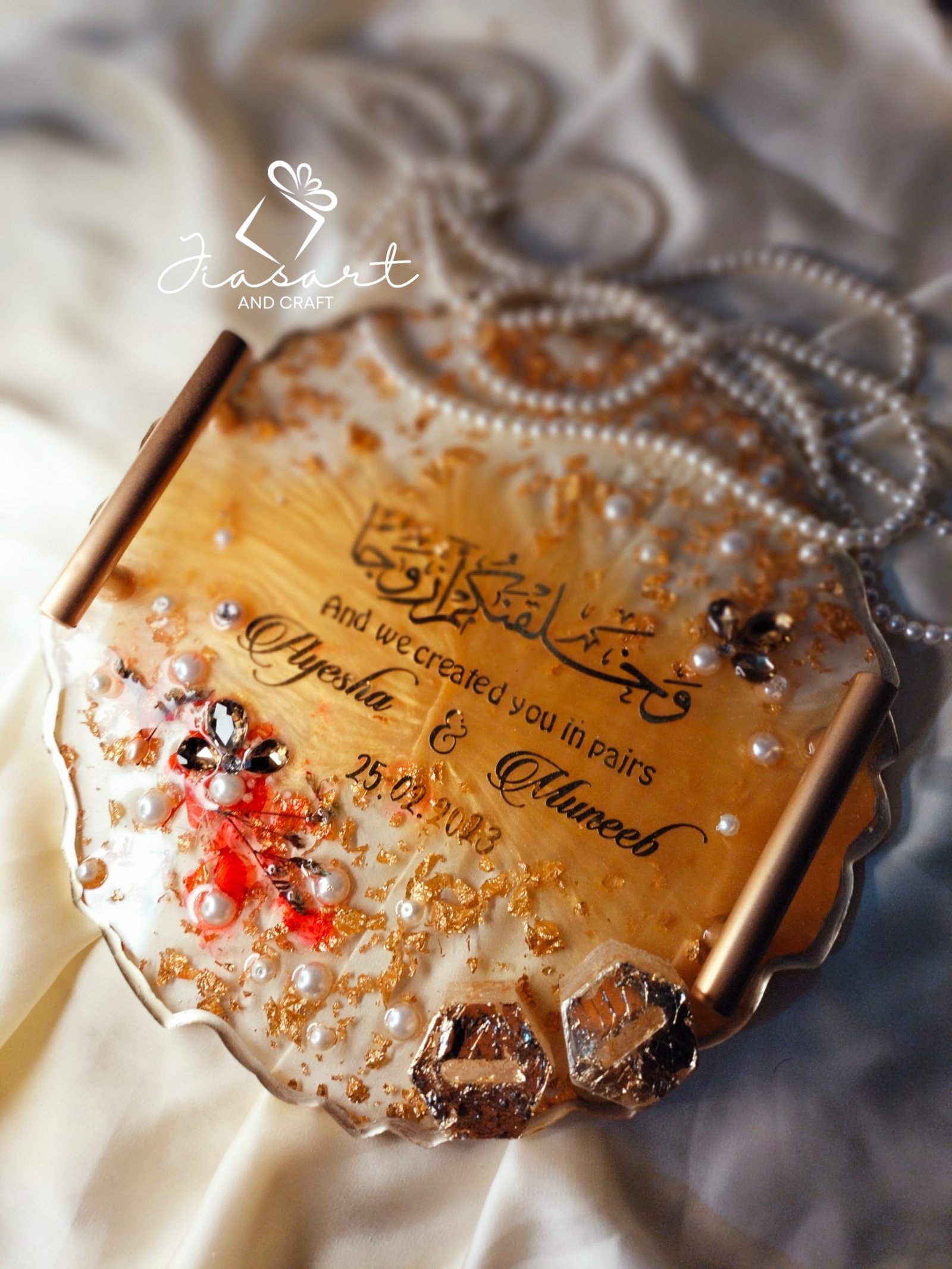 10 inches Peach & Gold Resin Engagement Tray