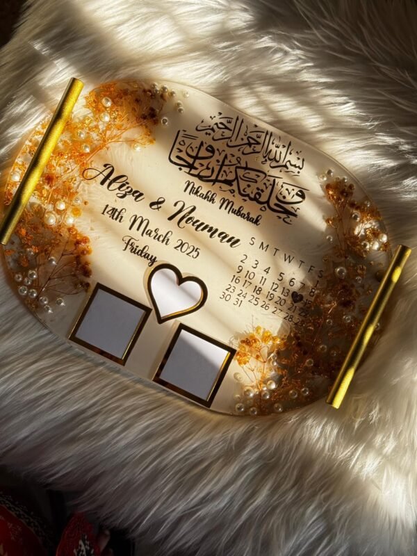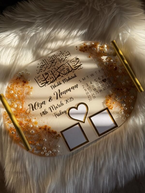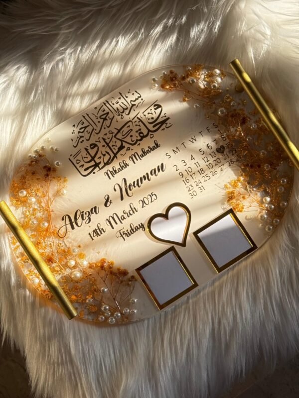 14 by 8 inches Resin tray with Thumb impressions with gold and white theme.