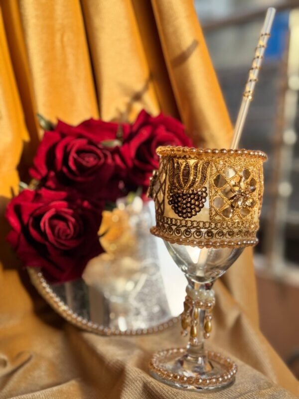 Doodh Pilai glass and tray in red & golden color
