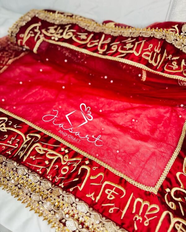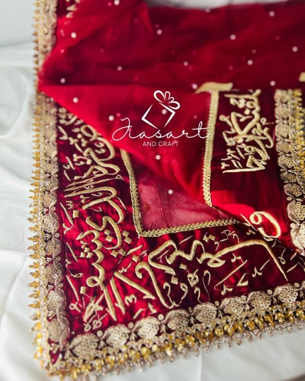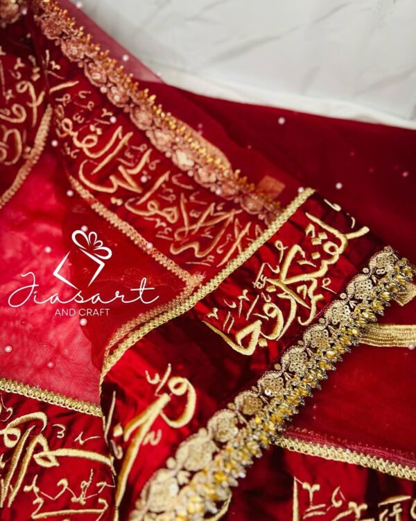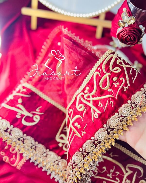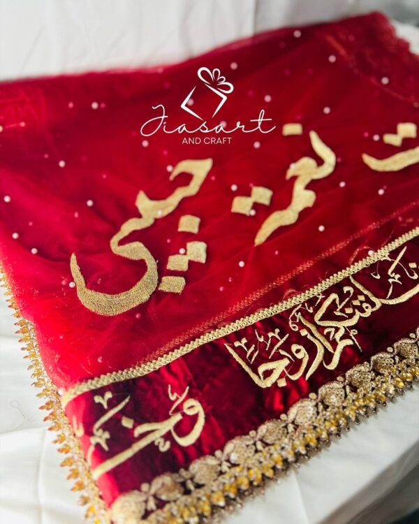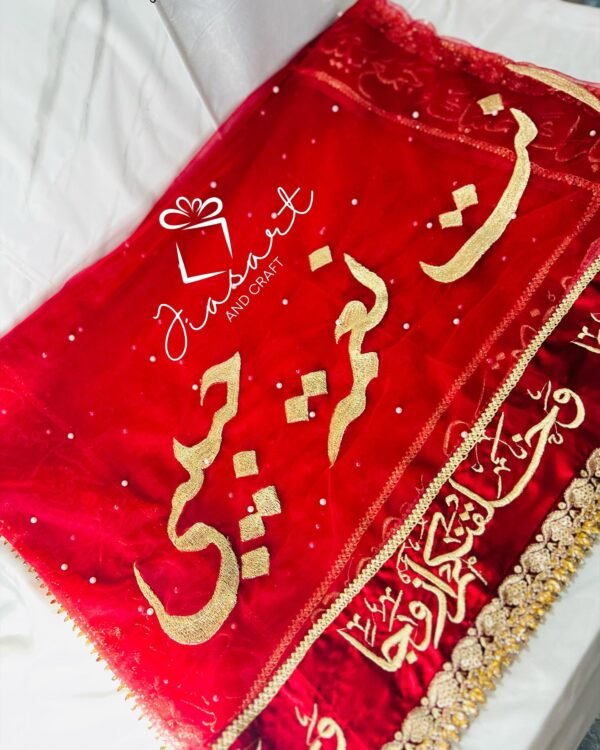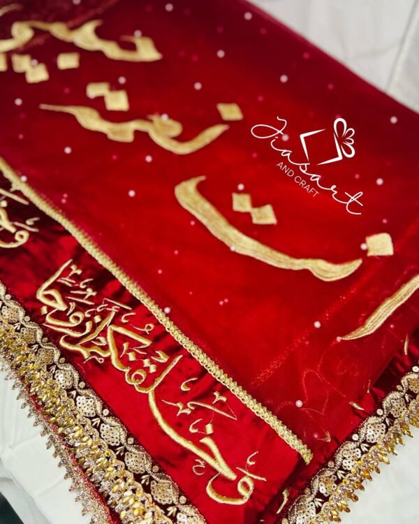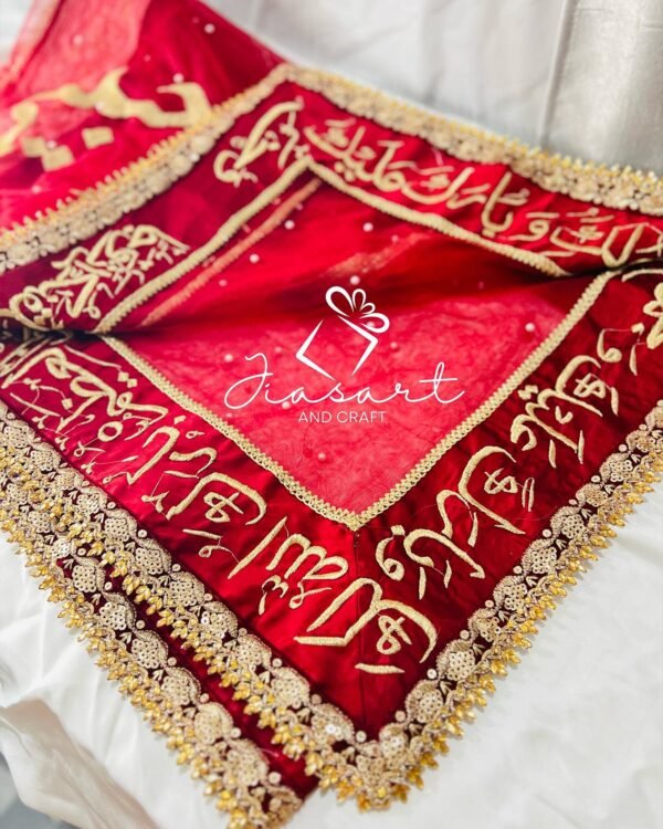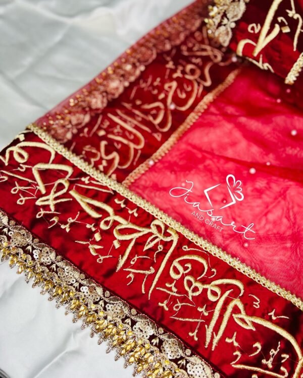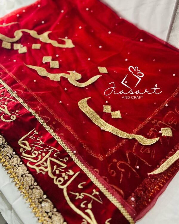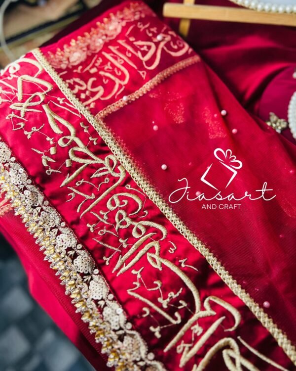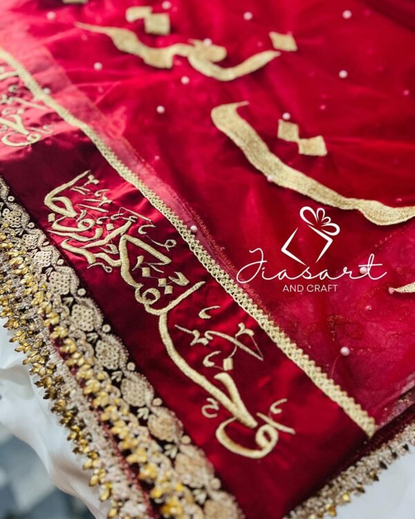Mahroon Dupatta With 4 Sided Arabic Work