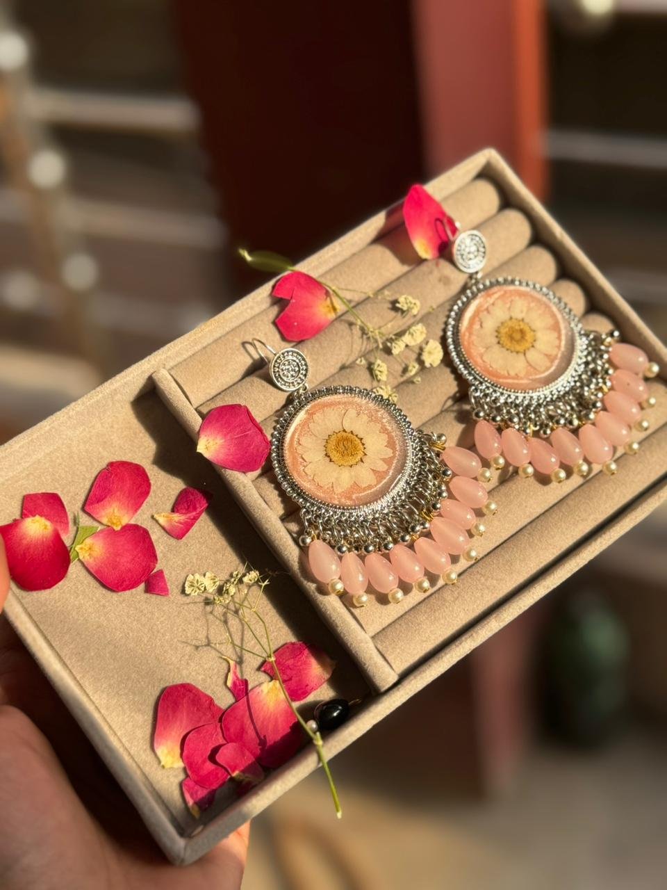 Silver & Rose Resin Earings || Resin Jewellery